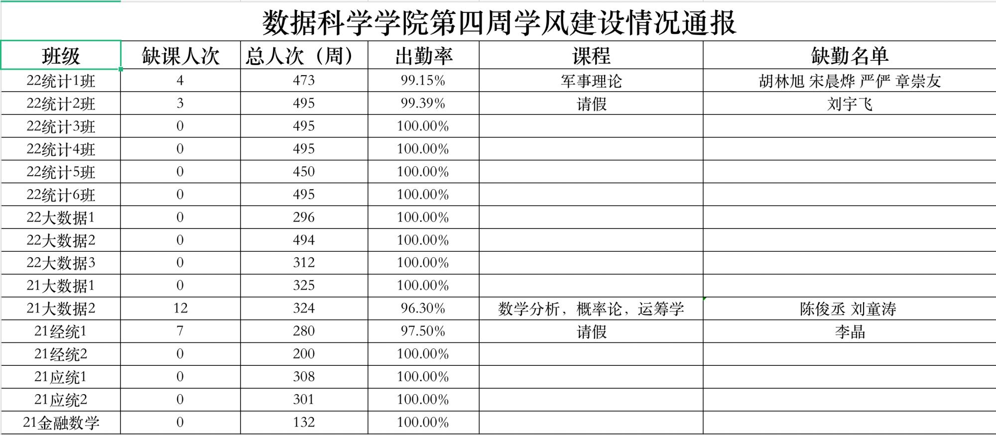 为进一步培育优良学风,构建公司学风建设的长效机制,营造良好的学习氛围,推进内涵建设,构建优良院风,学院对所有大一、大二班级统一上的课程及晚自习进行了课前全覆盖点名。现将点名情况做如下通报。